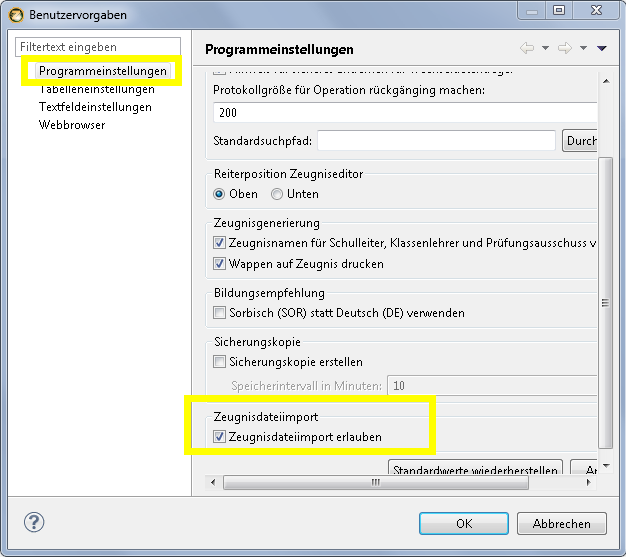Aus diesem Grund ist die Funktion auch im Auslieferungszustand deaktiviert und muss erst über das Menü Extras > Benutzervorgaben > Programmeinstellungen aktiviert werden.