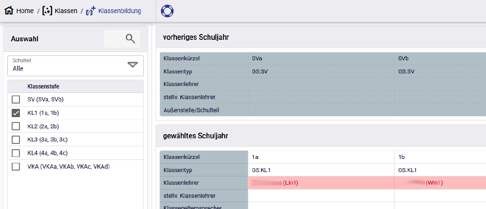 • Möglichst frühzeitig (sobald bekannt), in der Klassenbildung für das nächste Schuljahr die Klassenlehrer der zukünftigen Klasse 1 eintragen.