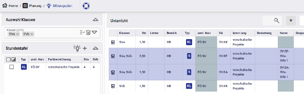 • In der Klassenbildung die notwendige Anzahl Klassen mit Klassentyp GS:SV bilden.