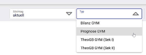 - Auswahl Schuljahr, Stichtag, Schultyp und unter Auswahl den Bereich für den anzuzeigenden TheoGB
