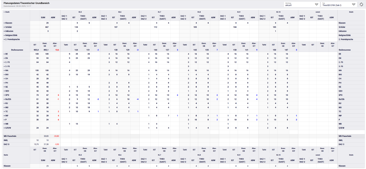 - sowie, ab Beginn des Schuljahres, die tatsächlichen Schülerzahlen, davor bis zum 1.8. die prognostischen Schülerzahlen.