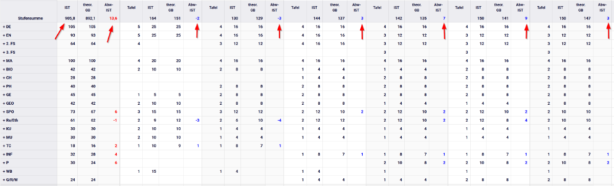 - Die angezeigten Abweichungen können durchaus zulässig sein, ihre Anzeige hat nur informativen Charakter. Über Zulässigkeit von Abweichungen und die Zuweisung von Stunden entscheidet die Schulreferentin/der Schulreferent.
