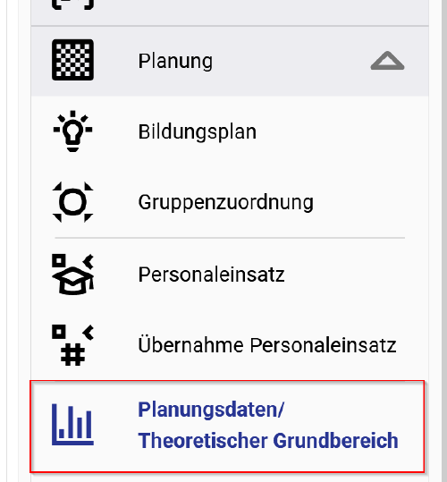Dieser theoretische Grundbereich (TheoGB) wird dem tatsächlich im Bildungsplan geplanten Grundbereich zum Zweck der Steuerung und Schulaufsicht gegenüber gestellt.
