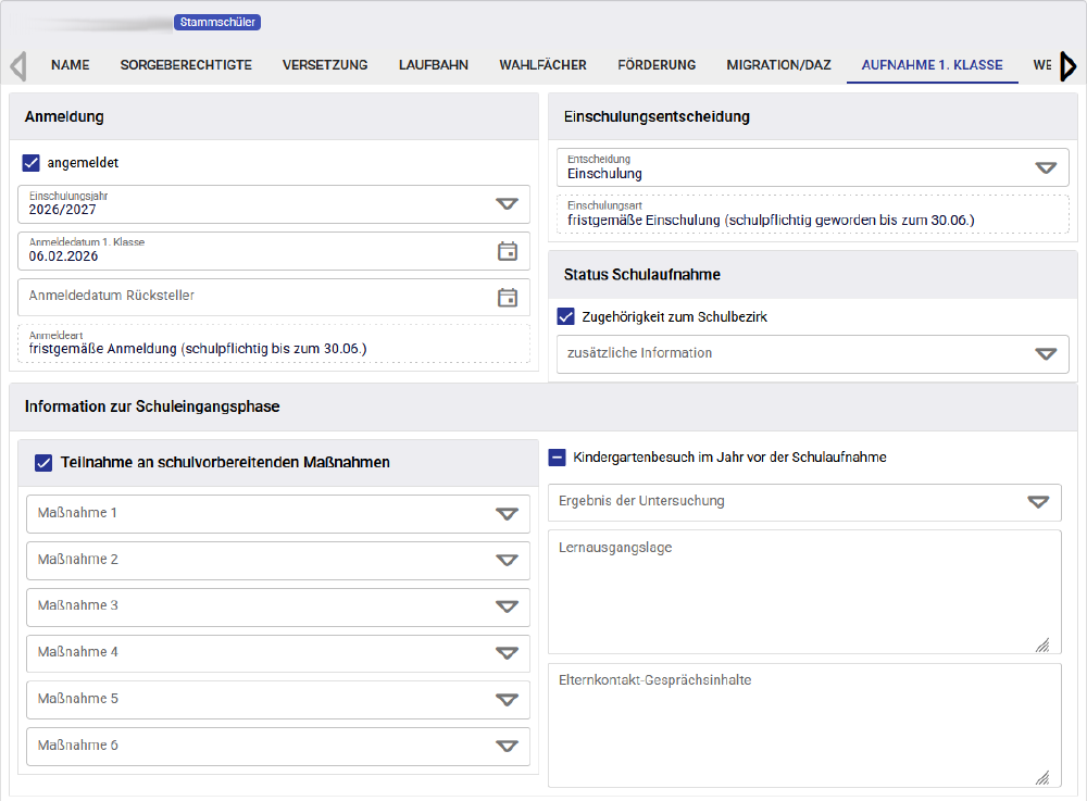 - Beim Öffnen der Maske „Schülerdaten“ sind standardmäßig vorausgewählt: